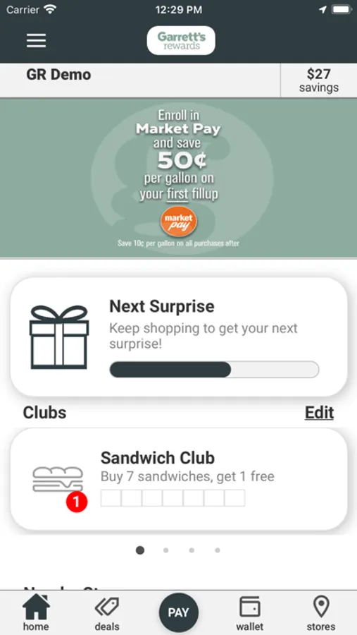 Fuel savings - Save 10¢ on every gallon when you pay with Market Pay. Market Pay is an upgrade to Garrett’s Rewards that lets you pay with your card or the Garrett’s Rewards mobile app.