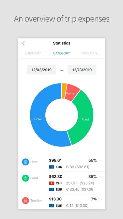 - Check all countries, period, and expenses of your trips