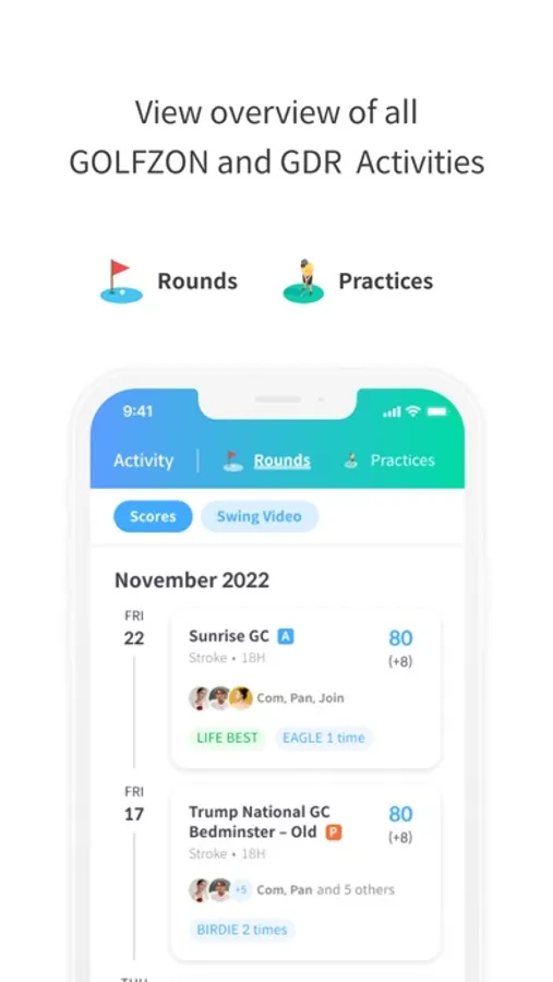 Over 3 million Golfzon members playing more than 65 million rounds of Golfzon golf per year is a lot of golf. Track every shot by joining the Golfzon community on this new and improved app.