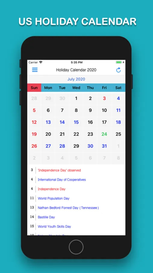 US Holiday Calendar is a very simple calendar that is build for you and US. It has beautiful interface and very easy to use.