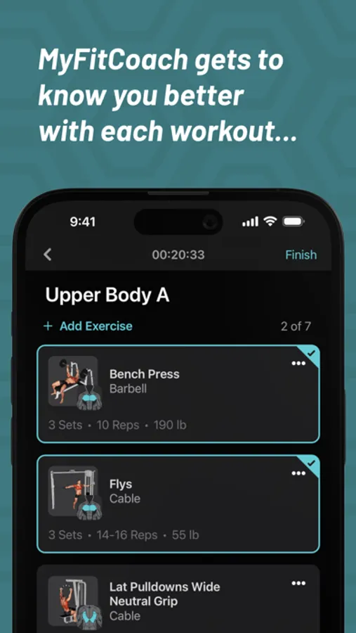MyFitCoach gets to know you better with each workout to determine the optimal reps and weights for you, so you get stronger every week.