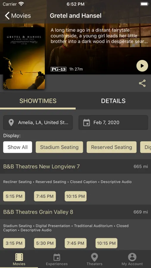 Check showtimes, buy tickets, watch trailers, and earn great rewards with the B&B Theatres app.