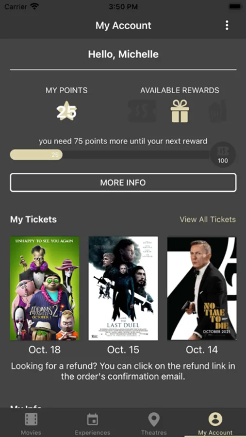 Quick share feature to allow you share your ticket purchase on social media, inviting friends to get their tickets and enjoy the show with you