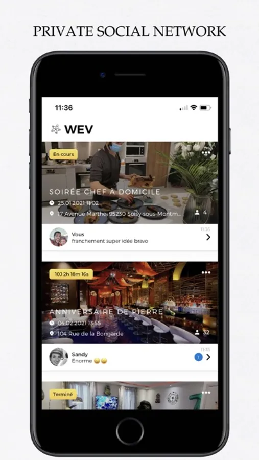 Wev is a 100% private social network. Create excitement around each of your events with your loved ones.