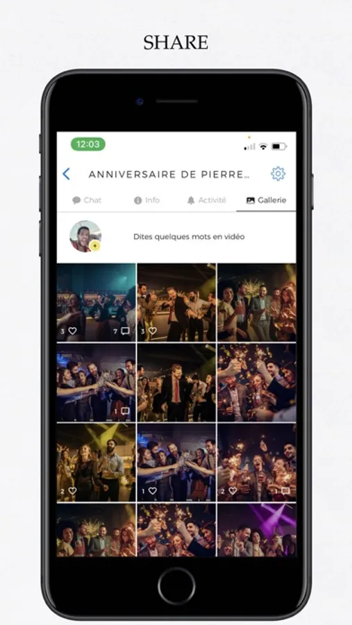 Your photos and videos as well as those of all participants are saved for free in your timeline and sorted by events so that you can relive your best moments whenever you want.