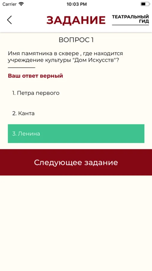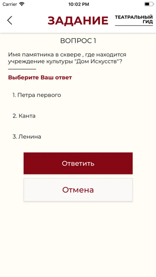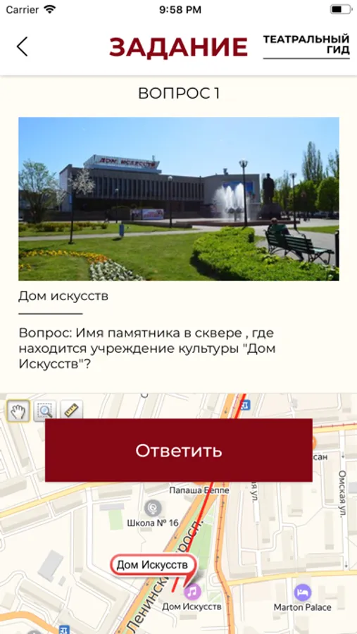 В режиме реального времени «Театральный гид» поможет вам найти театры, концертные площадки, дома культуры (адрес, режим работы, как добраться), позволит иметь под рукой полный список учреждений культуры региона. Пройдите взрослый или детский театральный маршрут в познавательной квестовой форме!