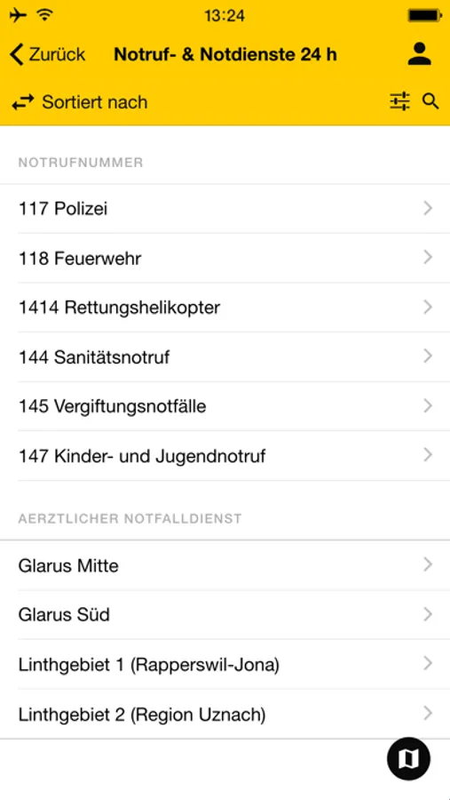 Notfall Hotlines von Polizei, Feuerwehr, Sanitätsnotruf, Rettungshelikopter, Vergiftungsnotfälle