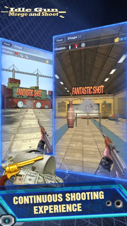 Shoot -Simple one tap controls that allow you empty your bullet clip into a variety of targets.