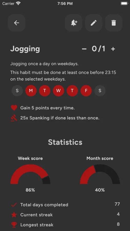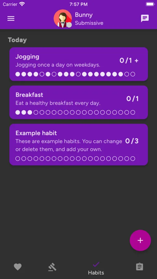Obedience is a habit tracker for BDSM couples. Whether you've been practising BDSM for a long time, or you're new to the scene, Obedience will help you and your partner(s) track daily and weekly habits, and puts the dominant in charge of rewards and punishments. Couples can connect their phones, which enables one to update their habit status and spend their rewarded coins, and the other to see these real time updates and set up a reward and punishment system.