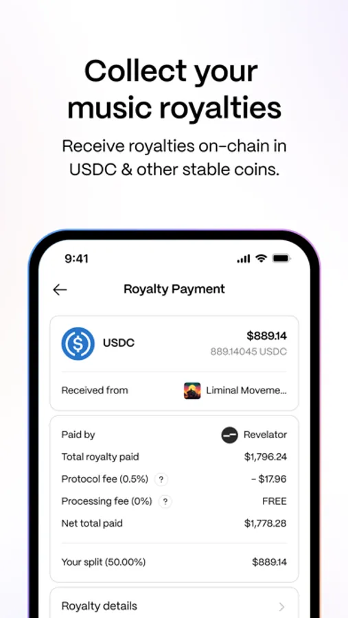 → Receive royalties in USDC from your held Royalty Tokens