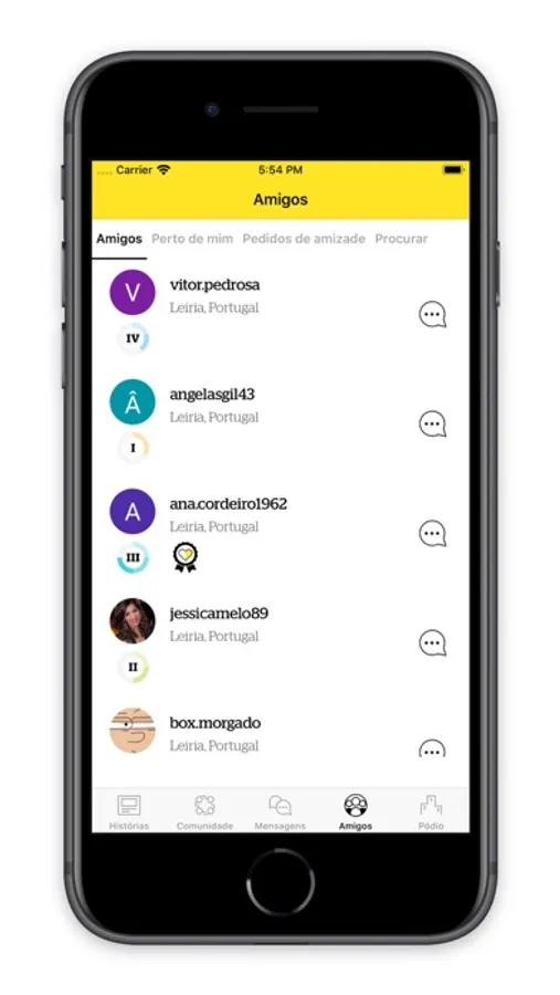 - É possível procurar e localizar outros leirienses e estabelecer contacto com eles através de um espaço de comunidade ou de mensagens privadas.