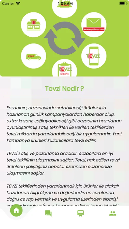 Eczacının eczanesine satabileceği ürünler için hazırlanan günlük kampanyalardan harberdar olup ekstra kazanç sağlayabileceği gibi eczacılar için hazırlanan oyunlaştırılmış satış teknikleri ile verilen tekliflerden tevzi miktarda faydalanabileceği uygulamadır.
