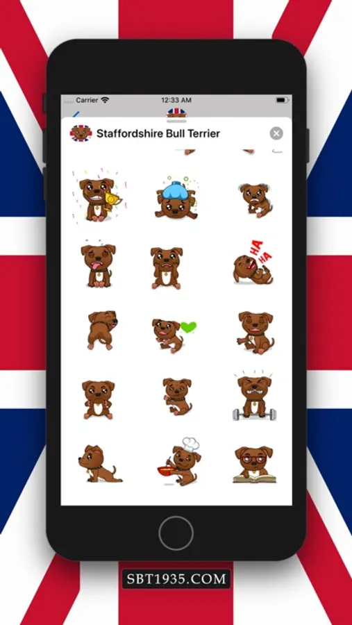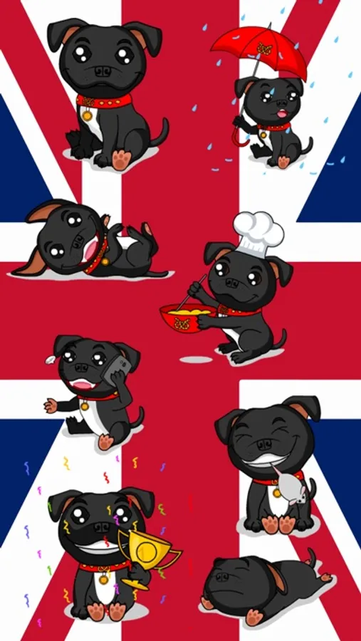 Get 100+ fun, cool and adorable fully animated Staffordshire Bull Terrier stickers for your conversations with this new staffy theme sticker pack!