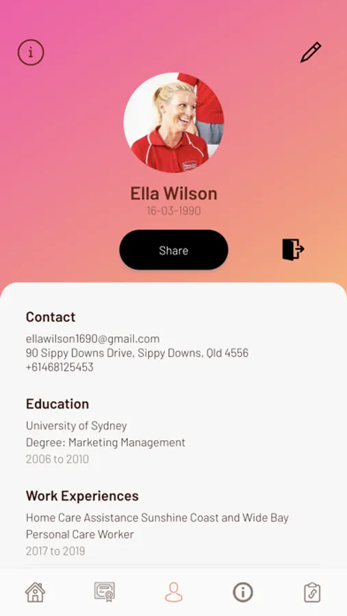 Carer Sharer is an App to support both paid and unpaid carers in our community. Being a Carer can be an isolating, emotional, rewarding and challenging journey, and carers are truly the backbone of our society. Carers are able to upload and store certificates and qualifications, connect with other carers on social platforms and also provides a central point for Commonwealth resources.
