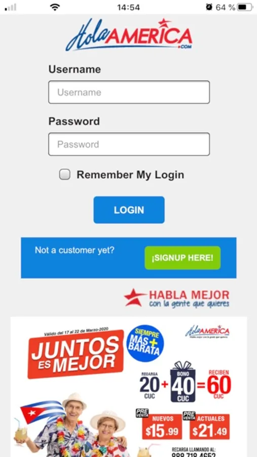 With the new application of HolaAmerica you will be able to call your family and friends who are outside the United States at the most competitive rates, and you will also be able to send them top-ups in the easiest way.