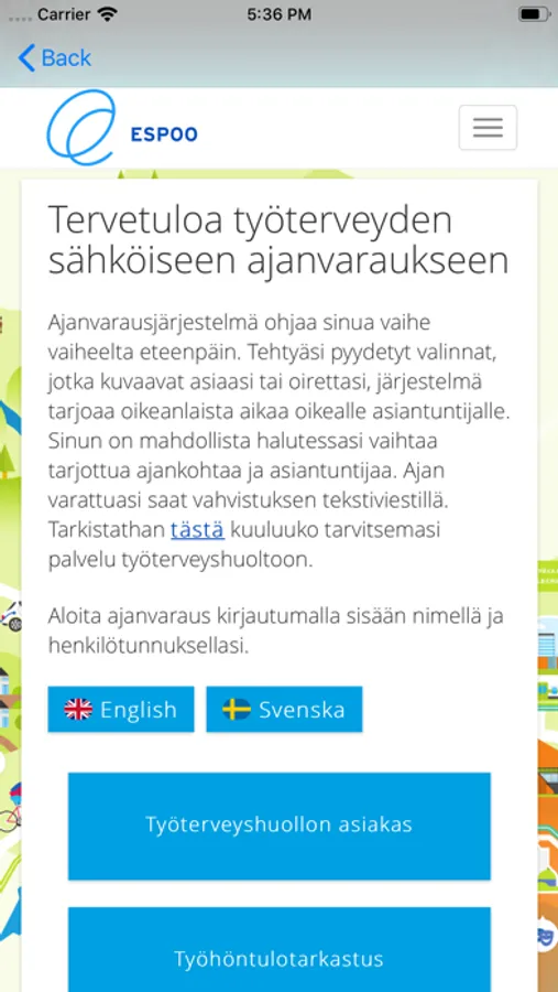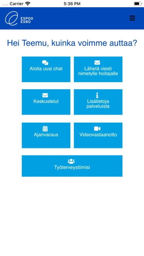 Työterveyden sähköinen asiointikanava on vaivaton ja tietoturvallinen tapa olla yhteydessä työterveyshuoltoon. Sovelluksen avulla voit viestiä joko kiireellisissä asioissa neuvontahoitajan kanssa tai kiireettömissä asioissa oman hoitotiimisi kanssa. Voit myös osallistua videotapaamisen, varata ajan vastaanotolle ja tarkastella tulevia ja menneitä varauksiasi.
