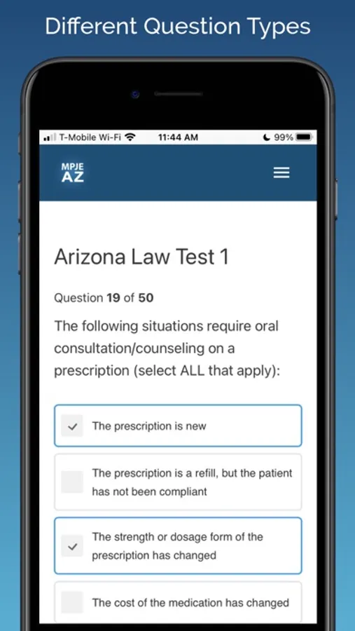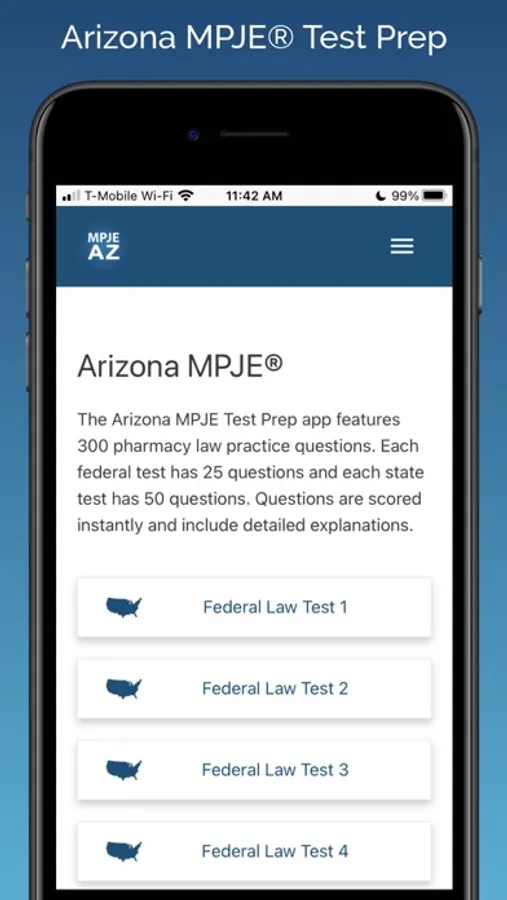 Our Arizona MPJE® Test Prep app includes 300 pharmacy law practice questions: