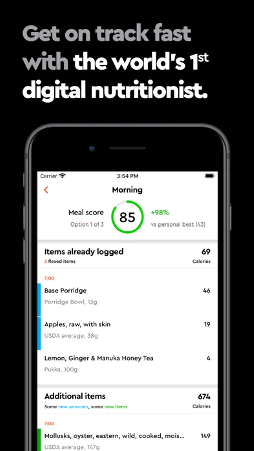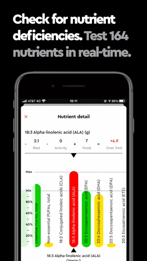 Fuelbetter track calories, macros, and 170+ other nutrients & bioactive substances accurately. This complete, holistic view of your nutrition, combined with Fuelbetter's ground-breaking digital dietitian, empowers you to achieve your dietary, health, and performance goals, whatever they are: