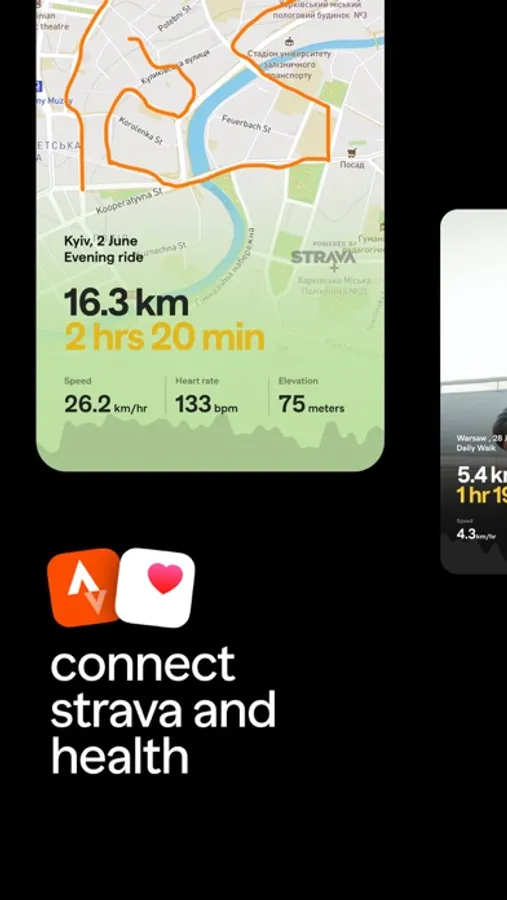 Connect to Apple Health and Strava to effortlessly fetch your workout data. Use our powerful Strava video editor to transform your fitness tracking data into stunning videos, complete with a personalized workout creator and editor.