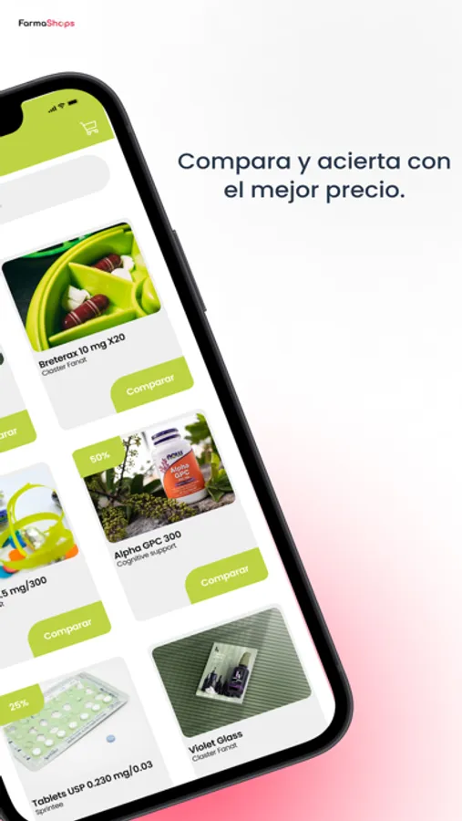 En FarmaShops puedes realizar búsqueda y compra de productos y servicios farmaceúticos o relacionados con la salud. La aplicación compara la información de los aliados y prioriza los resultados según su disponibilidad, precio y tiempo de entrega, permitiendo a nuestros usuarios ahorrar tiempo y dinero.