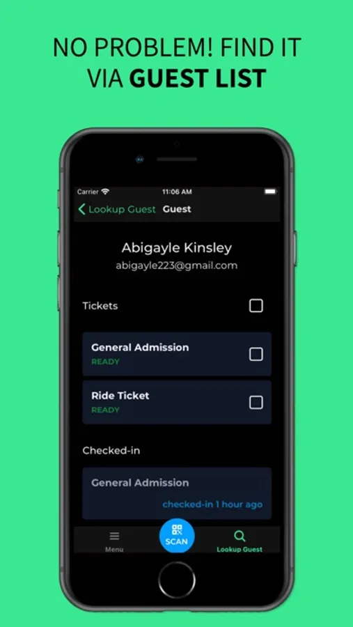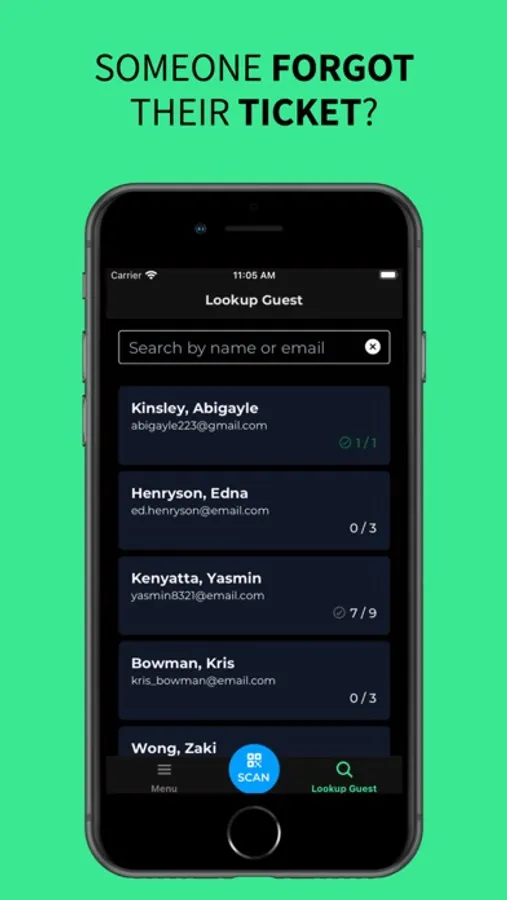 Easy Guest Lookup: Don’t worry if your guest has misplaced their ticket, you can easily search guests by their name or email address for a smooth check-in process.