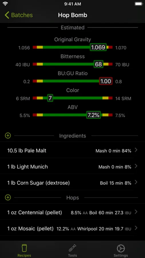 ◆ Estimates O.G., F.G., liquid volumes, bitterness, color, and more for extract, all-grain, and BIAB recipes.