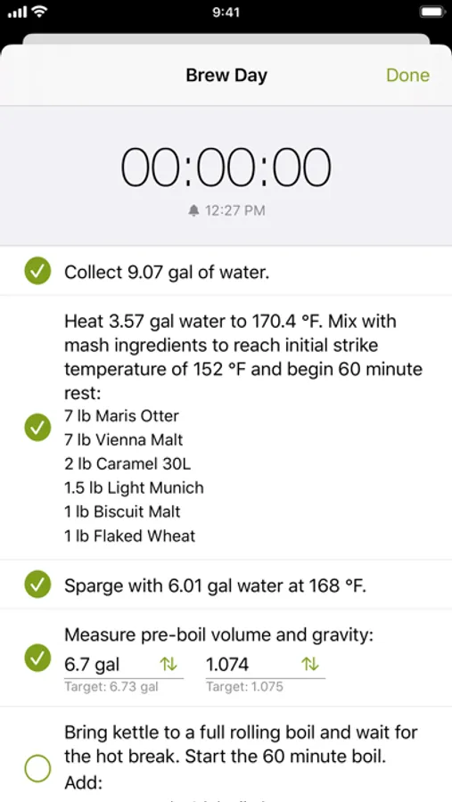 ◆ Brew day steps and timers guide you through your entire brew day, one step at a time.