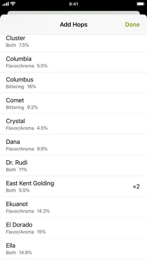 ◆ Extensive ingredients database built-in: 50+ grains, extracts, and adjuncts; nearly 150 varieties of hops; nearly 200 yeast strains; 50+ sugars, flavorings, and finings.