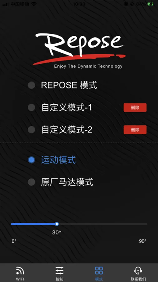 支持多种模式选择,同时可以设定保存自定义的控制参数