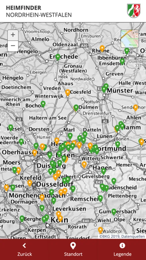 Der Heimfinder NRW unterstützt Sie schnell und einfach bei der Suche nach einem Dauer- oder Kurzzeitpflegeplatz. Das Land Nordrhein-Westfalen hat alle Pflegeeinrichtungen und Kurzzeitpflegeeinrichtungen verpflichtet, tagesaktuell freie und belegbare Plätze zu melden. Über die Standortsuche können Sie sich so alle freien Pflegeplätze in Ihrer Nähe anzeigen lassen. Alternativ ist auch eine Suche auf der Karte oder über die Eingabe des Ortes möglich.