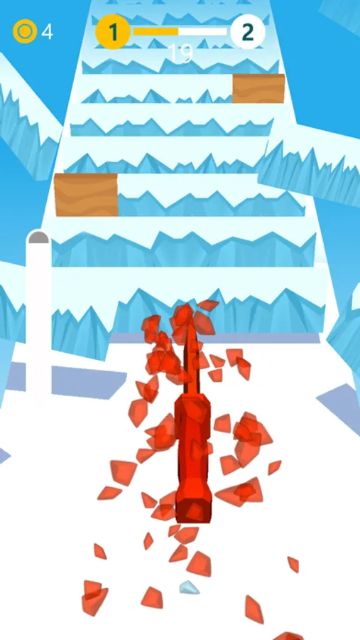 Tap the screen in time and throw the knife to destroy the platforms. If the knife crashes into an indestructible block, you lose, so be careful. Destroy many blocks at a time to earn more points.