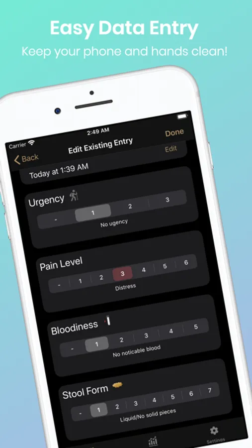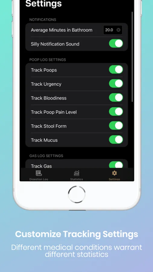 • Reminders to log statistics about your poop after you've finished in the bathroom