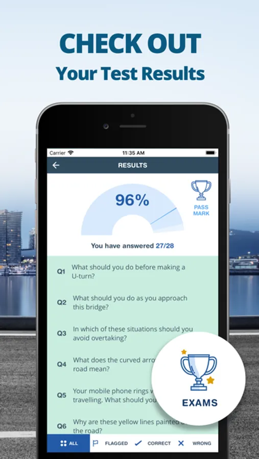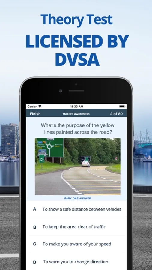 Driving Theory Test: Test your knowledge and go through every revision question, answer and explanation, licensed by the DVSA (Driver and Vehicle Standards Agency).