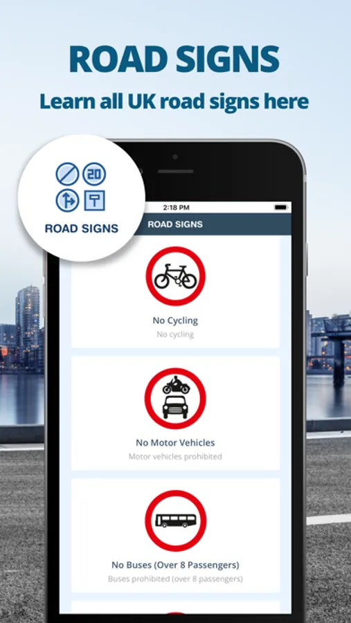 Road Signs: Learn over 150 UK road signs using illustrations and descriptions. Test your road signs knowledge later on using the theory tests.