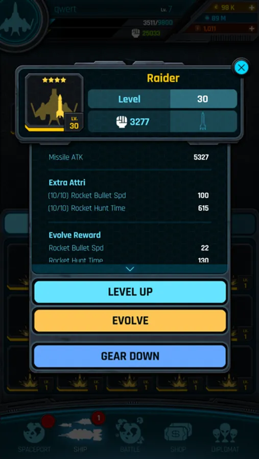 - Various Weapons: A spaceship can carry up to seven weapons and five defense gears. You do have a chance to customize your invincible aircraft with various weapons!