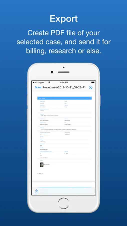 MS Logger is a HIPAA-compliant application that allows healthcare providers to log their procedures quickly and securely, and export them to use for billing, archiving and research.