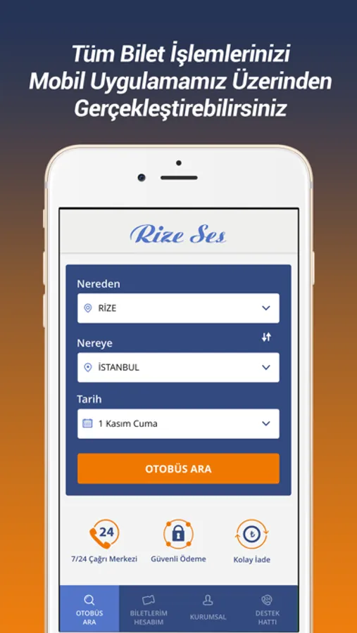 Rize Ses Seyahat'in şehirlerarası ulaşım biletlerinin satılmasını sağlayan bir iPhone uygulamasıdır.