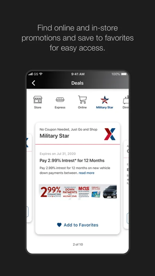 Discover the digital world of shopping by receiving promotions and deals in your wallet, searching products, and checking out online or pick-up in store orders by using your Military Star card or other payment methods within your wallet. You can also do curb-side pick-up at select Exchange locations from the app with online shopping. Start discovering and exploring your Army community today!
