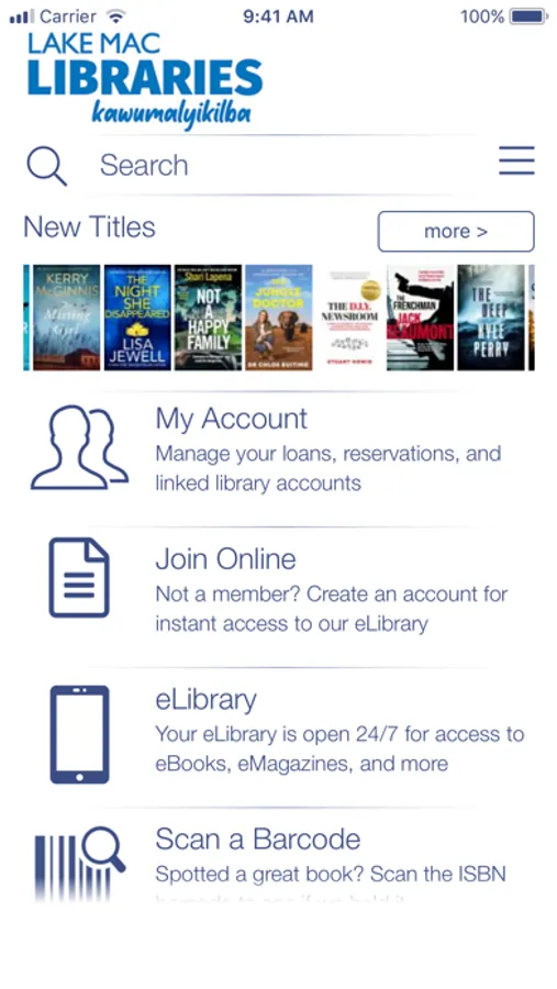 Access Lake Mac Libraries from your iPhone, iPad or iPod Touch. Use your device as your library card, manage your account, search the catalogue, access our eResources, and reserve or renew your books.