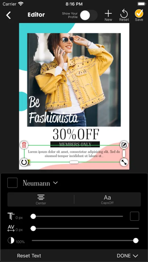 - Edit content with your own Texts using appropriate Fonts.