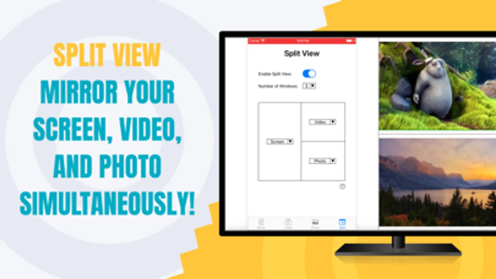 * Mirror up to Three Media at the same time - namely, the iPhone/iPad Screen, plus Video and Photo.