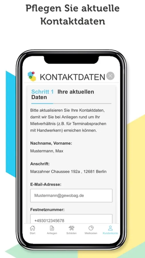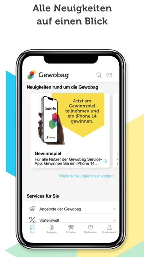 Mit der Gewobag Service-App haben Sie als unsere Mieterinnen und Mieter einen direkten und schnellen Kontakt zu uns. Nutzen Sie die Möglichkeit, mit der Gewobag Service-App auf Informa-tionen rund um Ihren Mietvertrag zuzugreifen. Sie wollen einen Wasserschaden melden, Ihre persönlichen Daten anpassen oder Ihre aktuelle Betriebskostenabrechnungen einsehen? Die Service-App macht’s möglich.