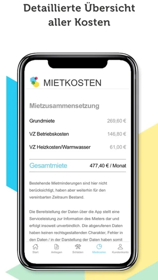 • Kostenaufstellung als Überblick über die Zusammensetzung der Mietvertragskosten, wie z.B. Betriebskostenabrechnungen