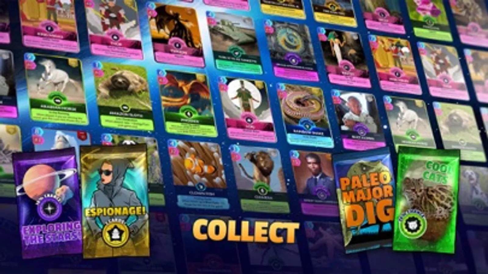 Gather together a collection of your favourite things, build an all conquering deck and then duel it out against other players from around the world in thrilling arenas. Combine cards to creative crazy combos like Quantum Leap and Ace of Spies, Gently beating your opponent into submission to gain famous victories and shoot up the leaderboard and leagues.