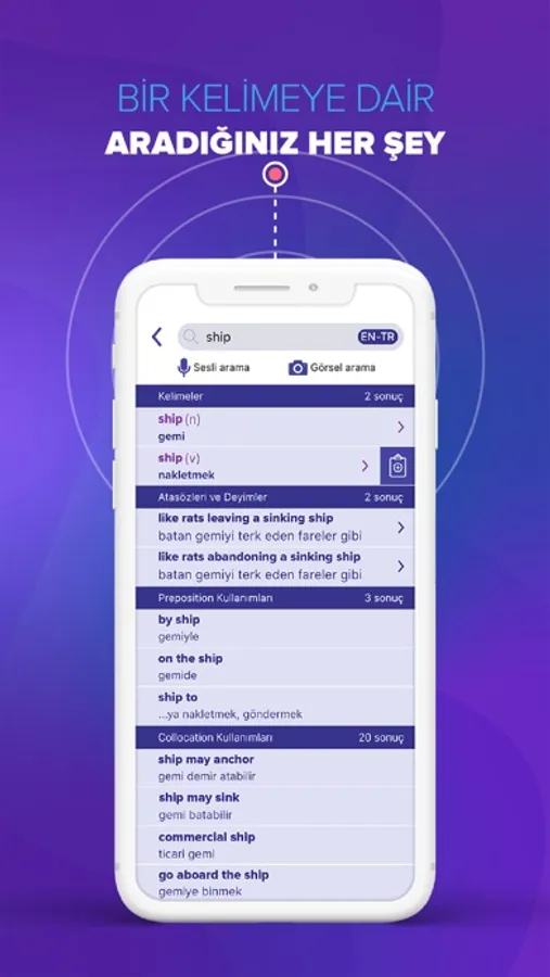 - Kelimeleri yazarak,ses ile yada resimden tarama ile arayabilirsiniz