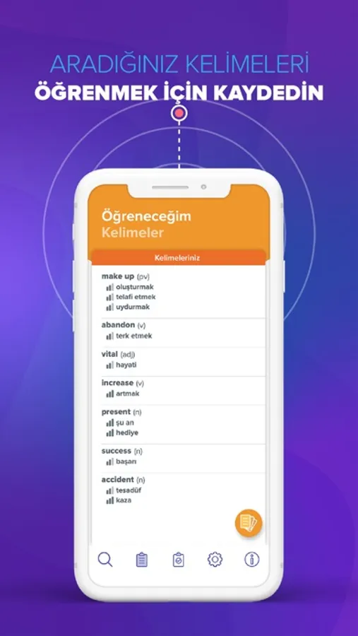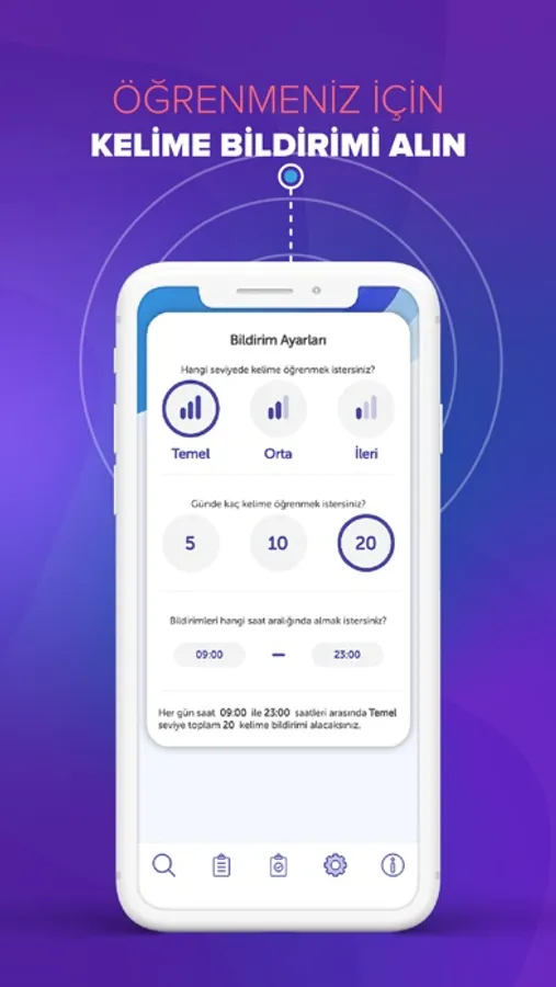 Düzenli olarak sözlüğün size belirlediğiniz seviyede , sayıda ve saat aralığında kelimeyi bildirim olarak alabilir ve bu kelimelerin listesini tekrar ederek öğrenebilirsiniz.