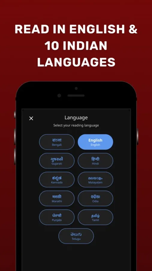 Hindi, Tamil, Marathi, Gujarati, Kannada, Telugu, Bengali, Malayalam, Odia, Punjabi, English
