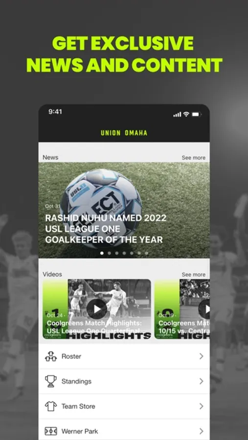 Access the team schedule, view player updates, watch the best highlights and get prepared for matchday with your favorite USL club: Union Omaha.