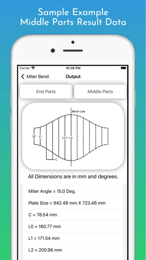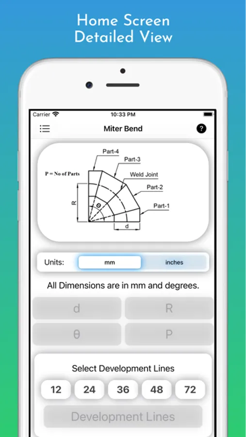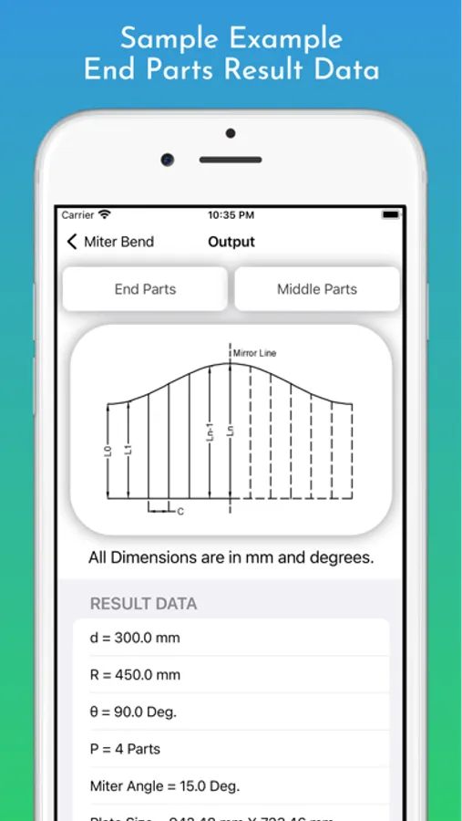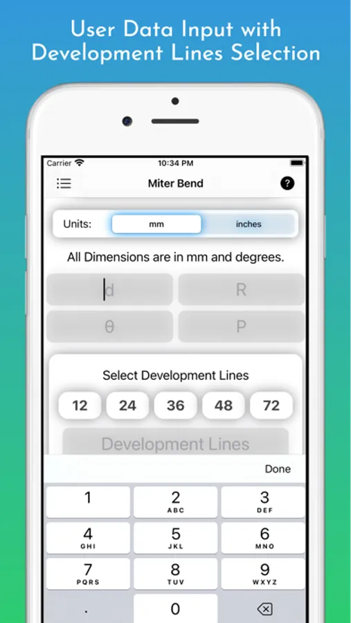 In this app all Dimensions are used in MM and Inches to Calculate Marking so please enter your Input Dimensions in MM and Inches to get a correct solution or correct layout of Miter Bend.