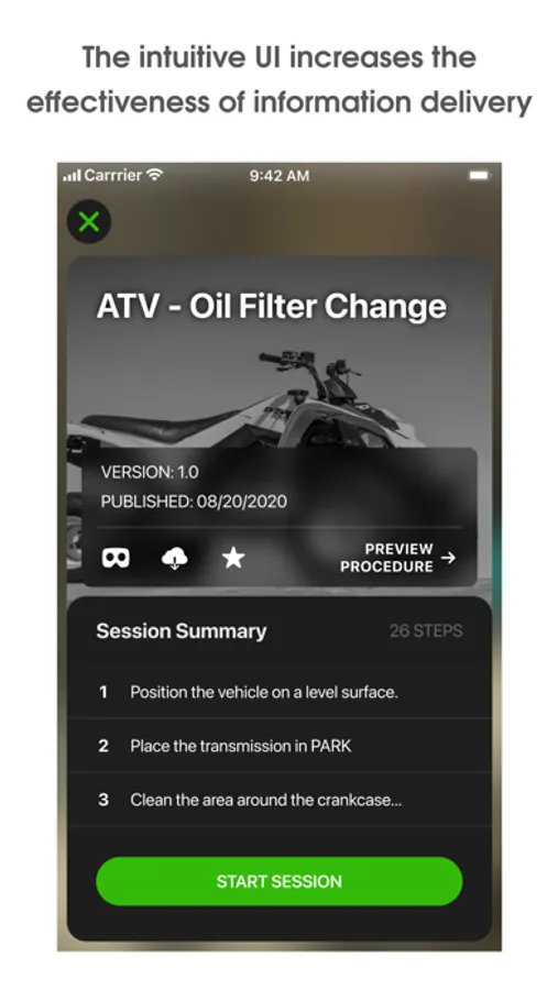 Vuforia Vantage features an intuitive user interface which provides a modern, personalized user experience for accessing, discovering, and consuming procedures created with Vuforia Expert Capture.